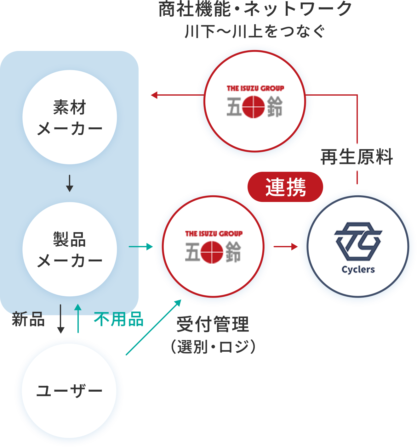 サイクラーズグループ各社は、それぞれの役割を果たし、追求していくことで、サーキュラーエコノミーの実現に貢献していきます。