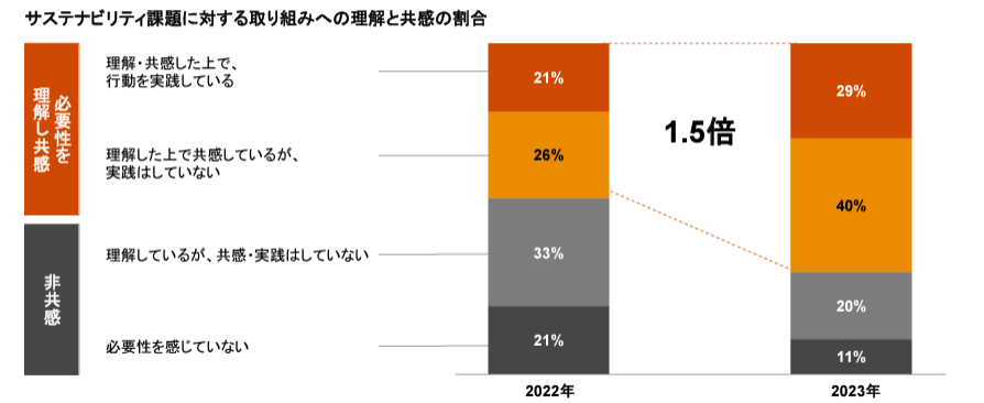近年の調査でも、サステナビリティ課題に対する消費者の理解と共感は顕著に高まっています。