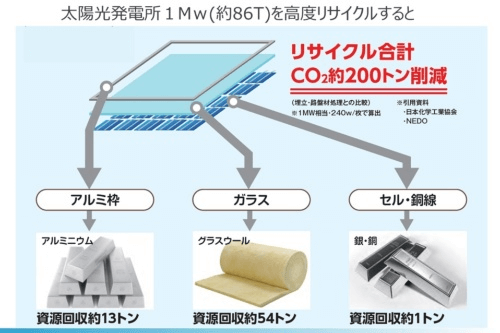 同社は2010年頃から太陽光パネルのリサイクル技術開発に取り組み始め、2022年の段階で、製品を構成するガラスや銀、そして銅といった主要な有価金属をほぼ100%に近い形で回収できる仕組みを実現しました。これは、太陽光パネルの普及に伴い将来的な廃棄量増加が予測される中で、非常に重要な技術的進展です。