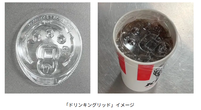 日本ケンタッキー・フライド・チキン(KFC)は、使い捨てプラスチックの包括的な削減を目指し、国内全店舗にストロー不要のドリンキングリッド(フタ)を順次導入しています。