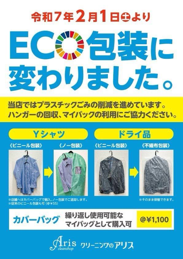 福島県・白河市を拠点とするクリーニング店「クリーンショップ アリス」では、環境配慮の一環として、Yシャツは包装を廃止し、ドライクリーニング品は従来のプラスチック包装を通気性の良い不織布製に変更しています。