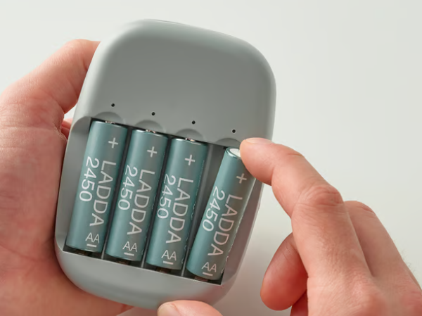 IKEA の「LADDA(ラッダ)」充電式電池は、従来の使い捨てアルカリ電池と比べて繰り返し充電できる点を活かし、長寿命・省エネ・再利用性を追求しています。