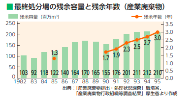 環境省の統計によると、産業廃棄物最終処分場の残余年数は19.7年まで短縮しています。首都圏や近畿圏では特に深刻で、一部地域では残余年数が数年程度まで減少している状況です。