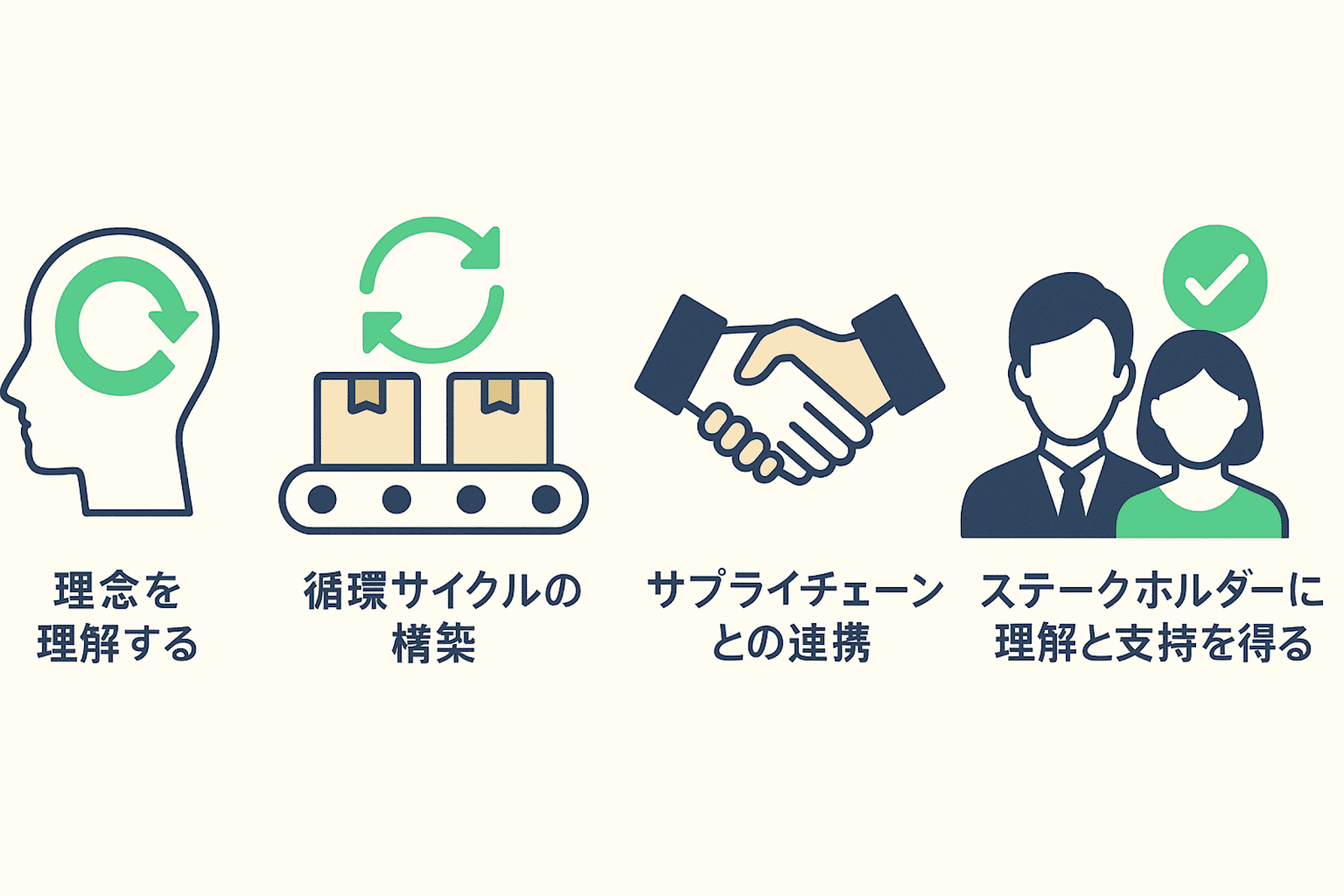 サーキュラーエコノミーを導入するにあたっては、理念の理解から実践的な経営戦略の策定まで、いくつかの重要な観点があります。以下では、取り組みを進める上でのポイントを整理します。