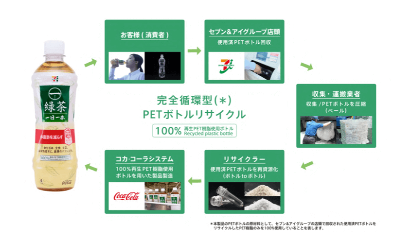 株式会社セブン&アイ・ホールディングスと日本コカ・コーラ株式会社は、グループ店舗で回収した使用済みPETボトルを100%再利用し、再び飲料ボトルとして製品化する完全循環型リサイクル(ボトルtoボトル)を構築しました。