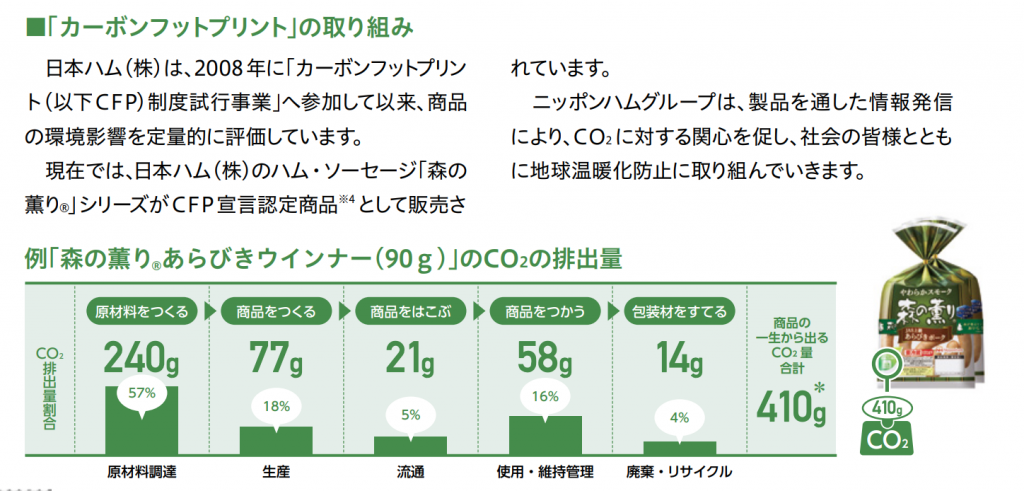 (2)食品業界|日本ハムのCFP表示にみる原材料・製造・包装・物流工程の環境負荷算定例