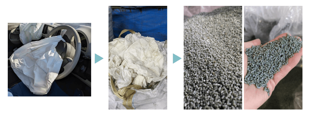具体的には、化学メーカーなどと連携し、ヘッドライトやランプ、エアバッグなどを回収して原料素材に再生しています。
