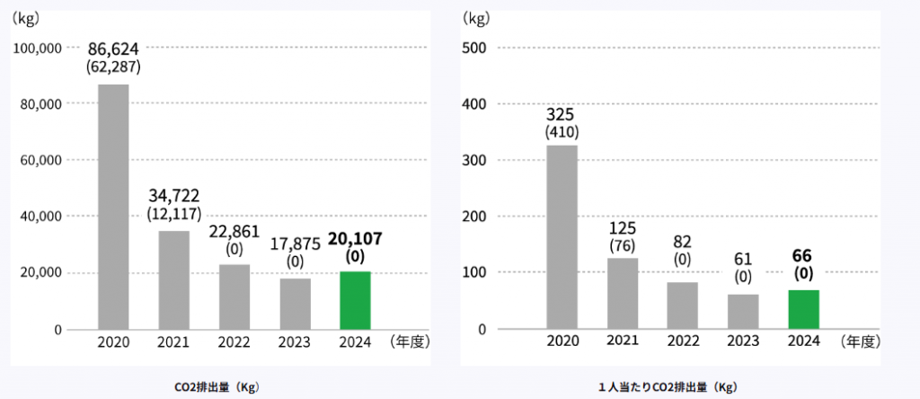 以下の図は、2つの事業所をCO2フリー電力に切り替えたことによるCO2排出量の削減量を示しています。