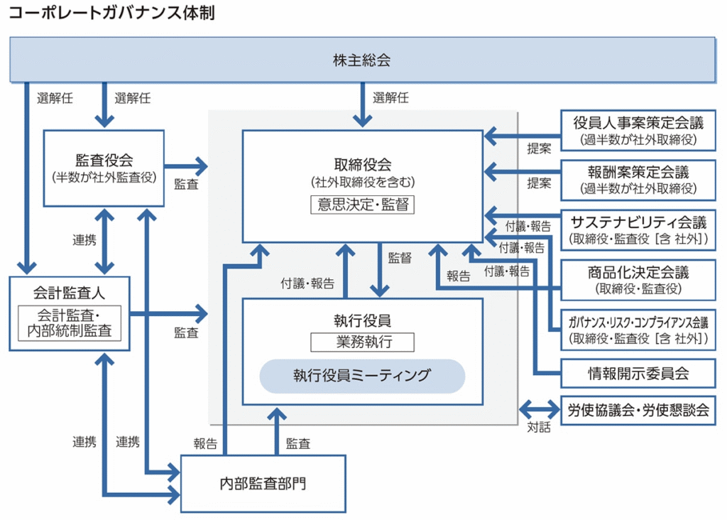 さらに、監査委員会や報酬委員会による執行役員の選任報酬決定の透明性を確保し、企業価値の向上を目指しています。