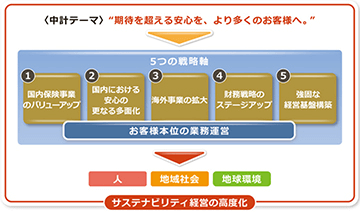 日本生命グループは、「誰もが、ずっと、安心して暮らせる社会」を目指すというステートメントのもと、あらゆる事業活動を通じてサステナビリティ経営を推進しています。