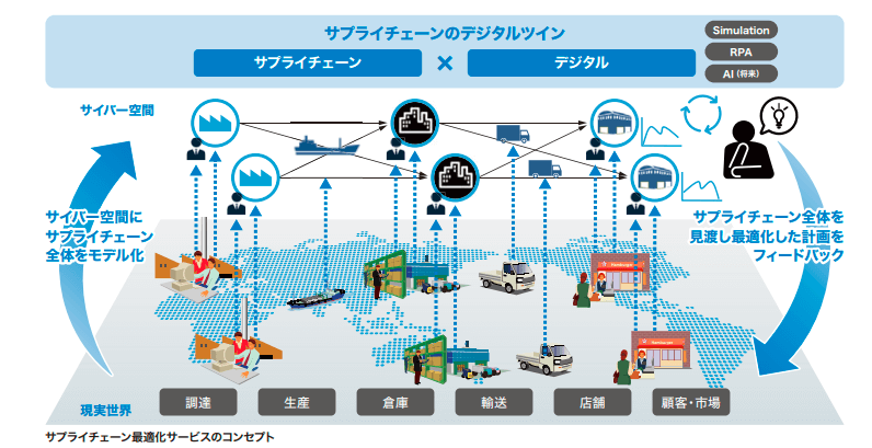日立製作所は、デジタルツイン技術を用いてサプライチェーン全体を可視化し、需給予測やリスク管理を高度化しています。シミュレーションにより最適な在庫配置や生産計画を策定しています。