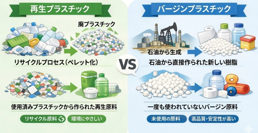 参考:再生原料VSバージン原料 コスト・品質比較と最適な選び方|中定樹脂