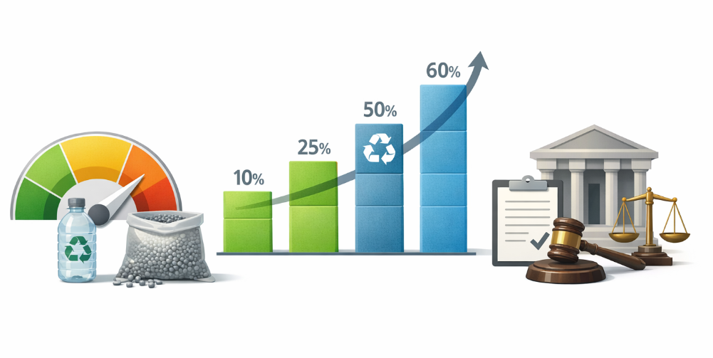再生材の利用は企業の自主的な取り組みの段階を越え、各国の法規制によって具体的な数値目標が求められます。