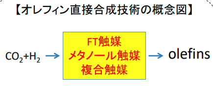 オレフィンは、従来、高温下でナフサを熱分解して製造されてきましたが、本技術では、CO₂をメタノールを経由して中低温域で一段階でオレフィンに変換することに成功しています。