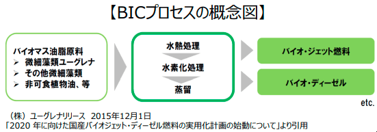 株式会社ユーグレナと千代田化工建設株式会社は、二酸化炭素有効利用技術として、光合成により二酸化炭素を吸収するバイオマスの利用に注目し、その手段としてバイオジェット・ディーゼル燃料の製造実証実験をおこないました。