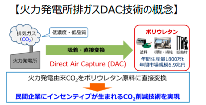 東ソー株式会社は、火力発電所の排気ガスに含まれる低濃度・低品質のCO₂を前処理せずに直接回収し、産業界のニーズが高いポリウレタン原料(MDI)に変換するDAC技術を開発しました。