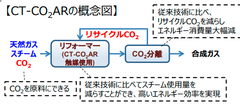 その結果、CO₂を活用した高効率な合成ガス製造技術を開発し、実用化を実現しました。