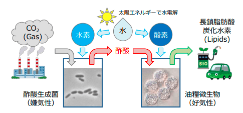 中国電力株式会社・出光興産株式会社・国立大学法人広島大学は、暗所で高速・高密度培養が可能な複数の微生微生物を組み合わせた複合発酵法を確立し、発電排出ガスから燃料や化成品の原料油脂を生産することにより、二酸化炭素を再資源化する新規バイオプロセスの開発をしました。